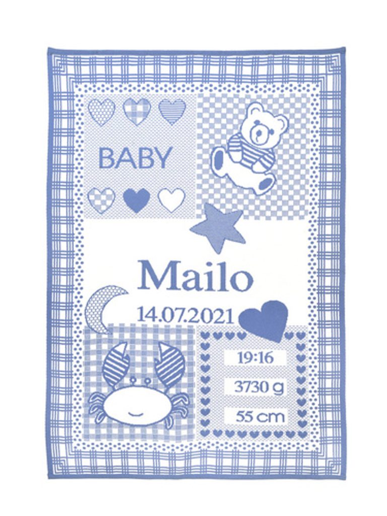 Detská deka s menom, dátumom a časom narodenia, rozmermi a znakom dieťaťa. Deka je vyrobená z mäkkej, hypoalergénnej organickej bavlny. Je teplá, ale zároveň odvádza nadmerné teplo, takže sa vaše dieťa neprehreje. Perfektne sa hodí do kočíka, alebo do postieľky.