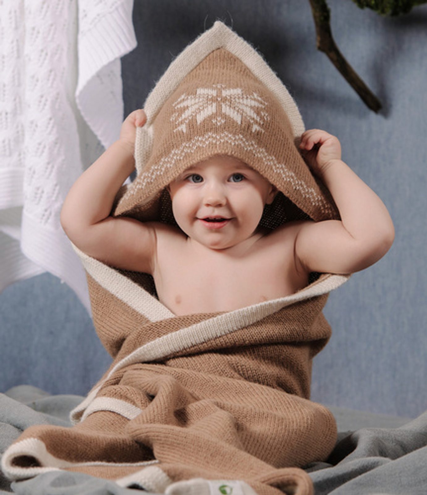 Ľahká, priedušnéá dokonale hrejivá a hypoalergénna. Táto deka je vyrobená z vlny z alpaky z peruánskych Ánd. Táto deka má v rohu vrecko na drobnosti, alebo ako malú čiapočku pre bábätko. Béžová až piesková farba je tiež pravou farbou vlny. Je veľmi mäkká a odvádza pot.