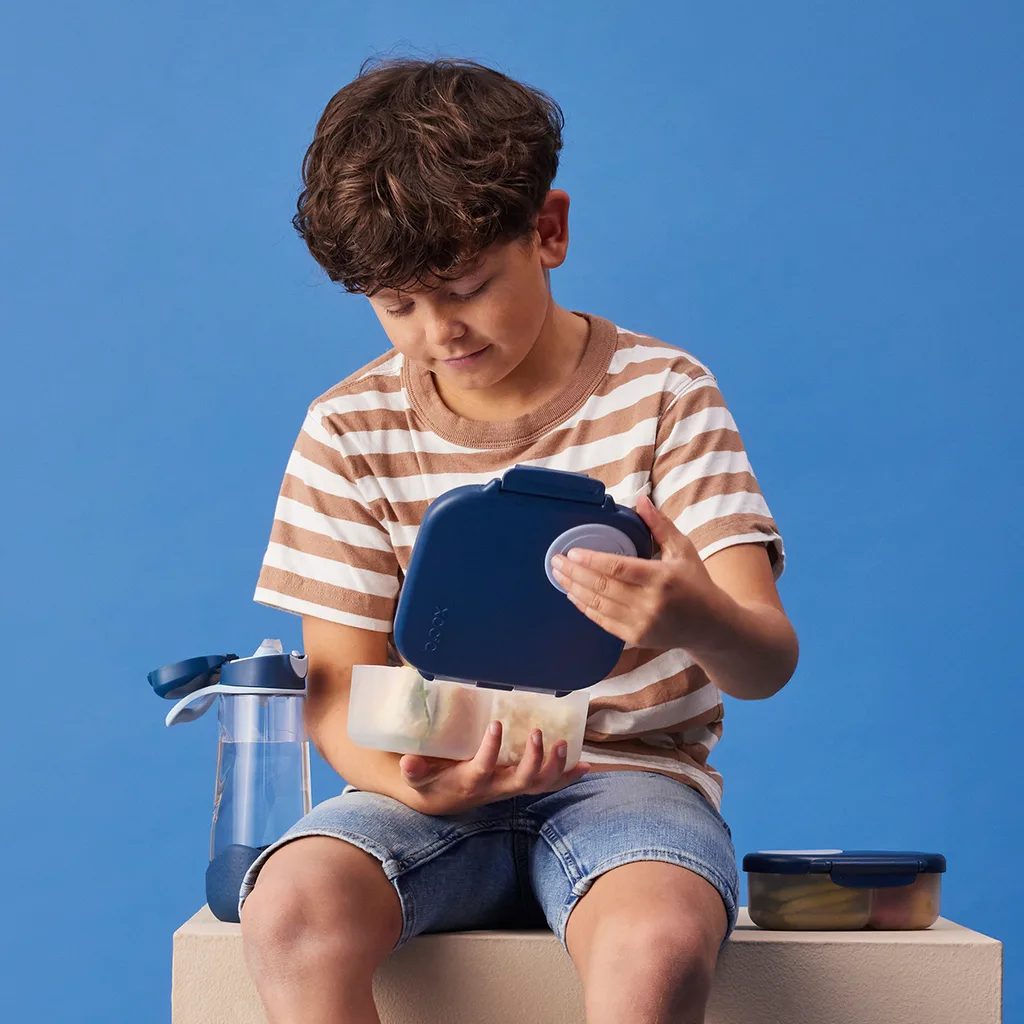 Praktický set b.box – stredný desiatový box a silikónová mini krabička pre variabilné a prehľadné desiaty. Ideálny do škôlky, školy aj na cesty. Umožní oddeliť menšie porcie a prispôsobiť desiatu každému dňu.