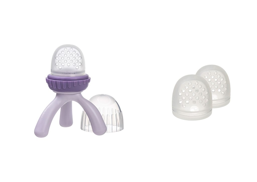 Kŕmiaci cumlík a hryzadlo s mäkkou silikónovou sieťkou od obľúbenej austrálskej značky b.box umožní deťom od 4 mesiacov bezpečne spoznávať nové potraviny bez obáv z vdýchnutia väčších kúskov. Stačí odskrutkovať krúžok, naplniť silikónovú sieťku ovocím či zeleninou a nechať dieťa objavovať svet chutí vlastným tempom.