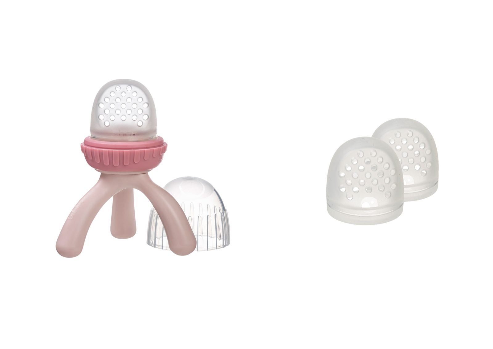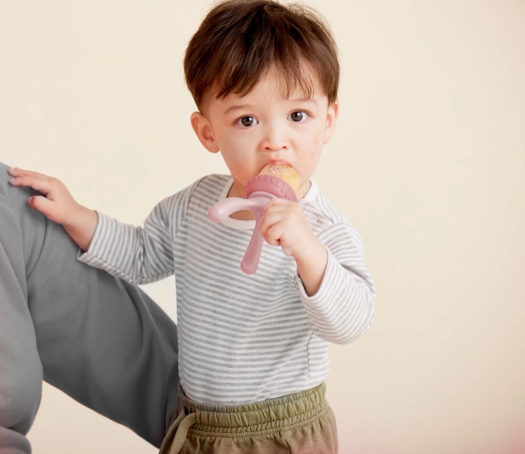 Kŕmiaci cumlík a hryzadlo s mäkkou silikónovou sieťkou od obľúbenej austrálskej značky b.box umožní deťom od 4 mesiacov bezpečne spoznávať nové potraviny bez obáv z vdýchnutia väčších kúskov. Stačí odskrutkovať krúžok, naplniť silikónovú sieťku ovocím či zeleninou a nechať dieťa objavovať svet chutí vlastným tempom.