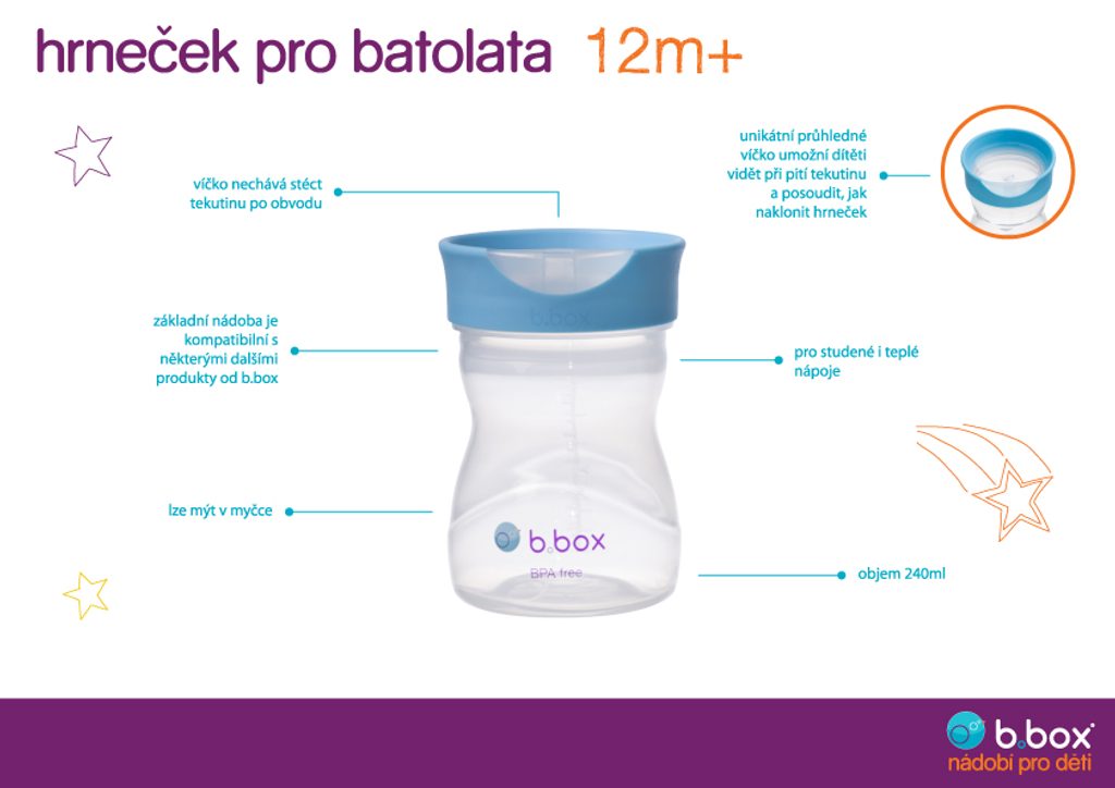 Obľúbená austrálska značka b.box ponúka skvelú štartovaciu sadu na pitie pre najmenšie deti. Sada na pitie obsahuje 3 rôzne hrnčeky v 1 a prevedie vaše bábätko od prvého hrnčeka až do batoľacieho veku. Jednoducho vymeňte viečko na hrnček a môžete skúšať, čo dieťaťu najviac vyhovuje!