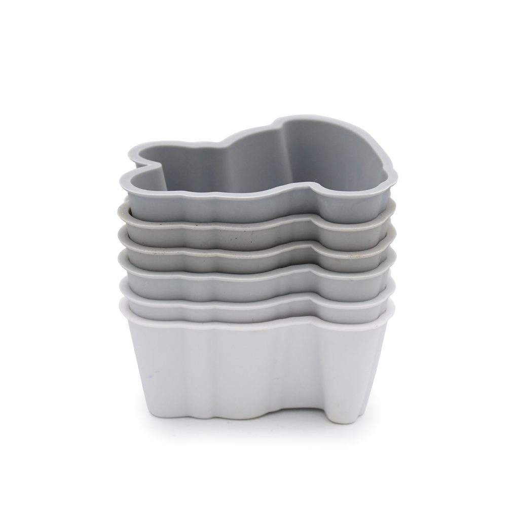 Sada 6 silikónových košíčkov v hravom motíve. Ideálna na oddelenie desiat, ovocia a dipov v lunch boxe aj na pečenie muffinov.