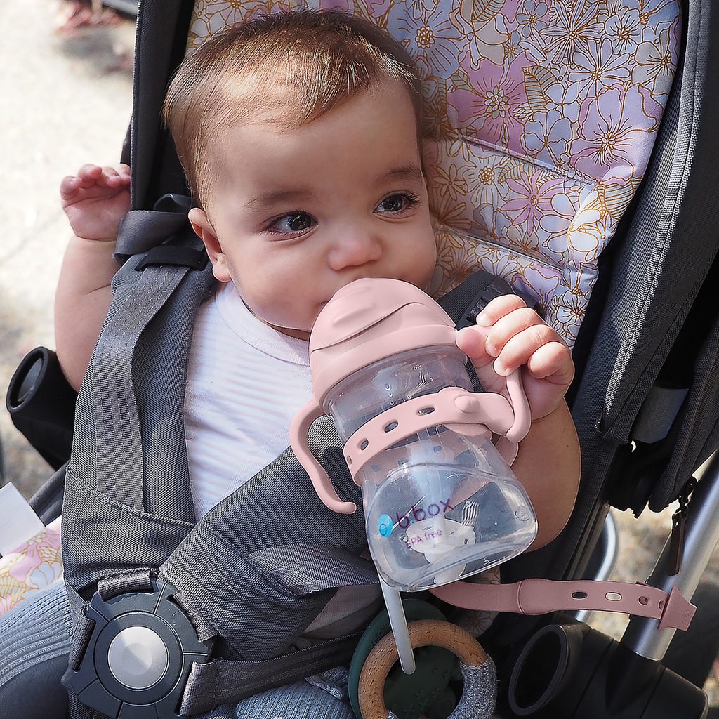 Ideálna kombinácia produktov b.box pre každodenné používanie - hrnček zaistí pohodlné pitie, zatiaľ čo pásik zabráni jeho strate alebo pádu.