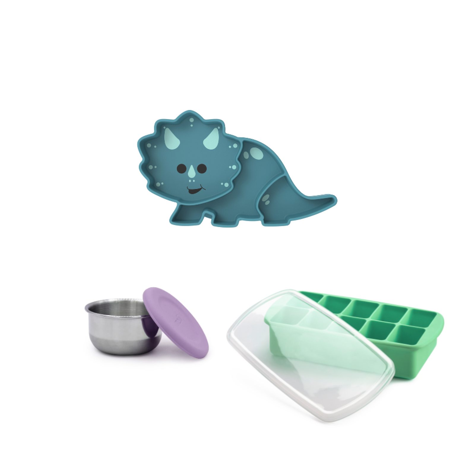Sada krabičiek Snack tubs 3ks - modré Silikónová forma do mrazničky na detskú výživu - sivá