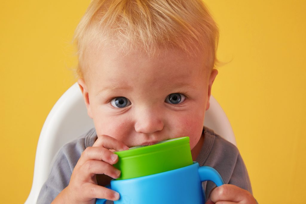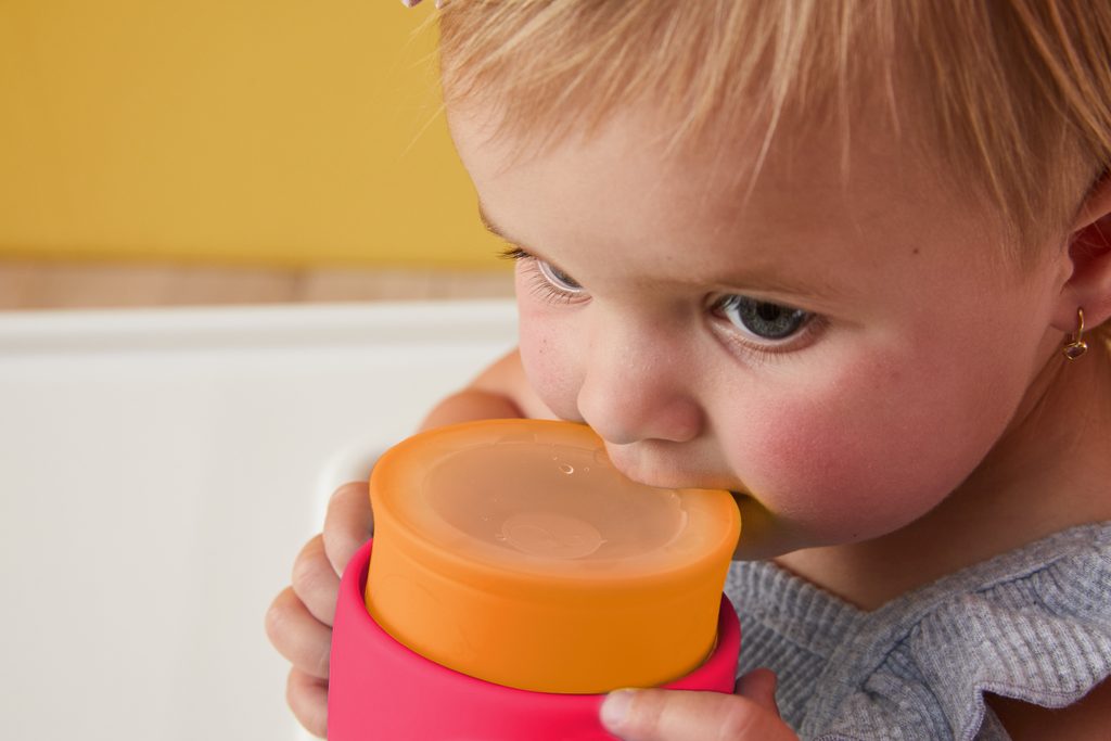 360° netečúci učiaci hrnček od značky b.box dovoľuje deťom nápoj z hrnčeka len usrkávať, ale hlavne učiť sa piť vďaka unikátnemu mäkkému silikónovému okraju po celom okraji hrnčeka.