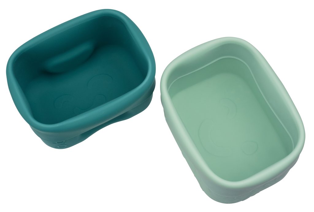 Každé balenie obsahuje dva tégliky, a to základňu a viečko. Tieto viacúčelové silikónové krabičky na desiatu možno používať aj samostatne; ako téglik a viečko na desiatu alebo ako formičky na pečenie. Silikónové kelímky môžu byť používané v plnej veľkosti alebo zložené a sú ideálne pre oddeľovanie a ukladanie potravín veľkosti sústa alebo obľúbených dipov.