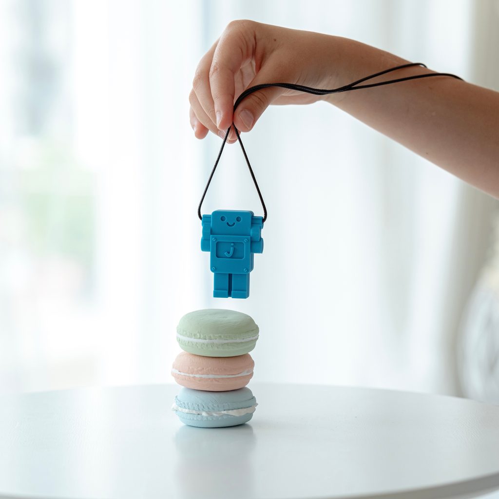 Žuvací prívesok Robot austrálskej značky Jellystone Designs je upokojujúcim priateľom, na ktorého sa vaše dieťa môže spoľahnúť, keď hrozí, že jeho deň zatemní veľké emócie.
